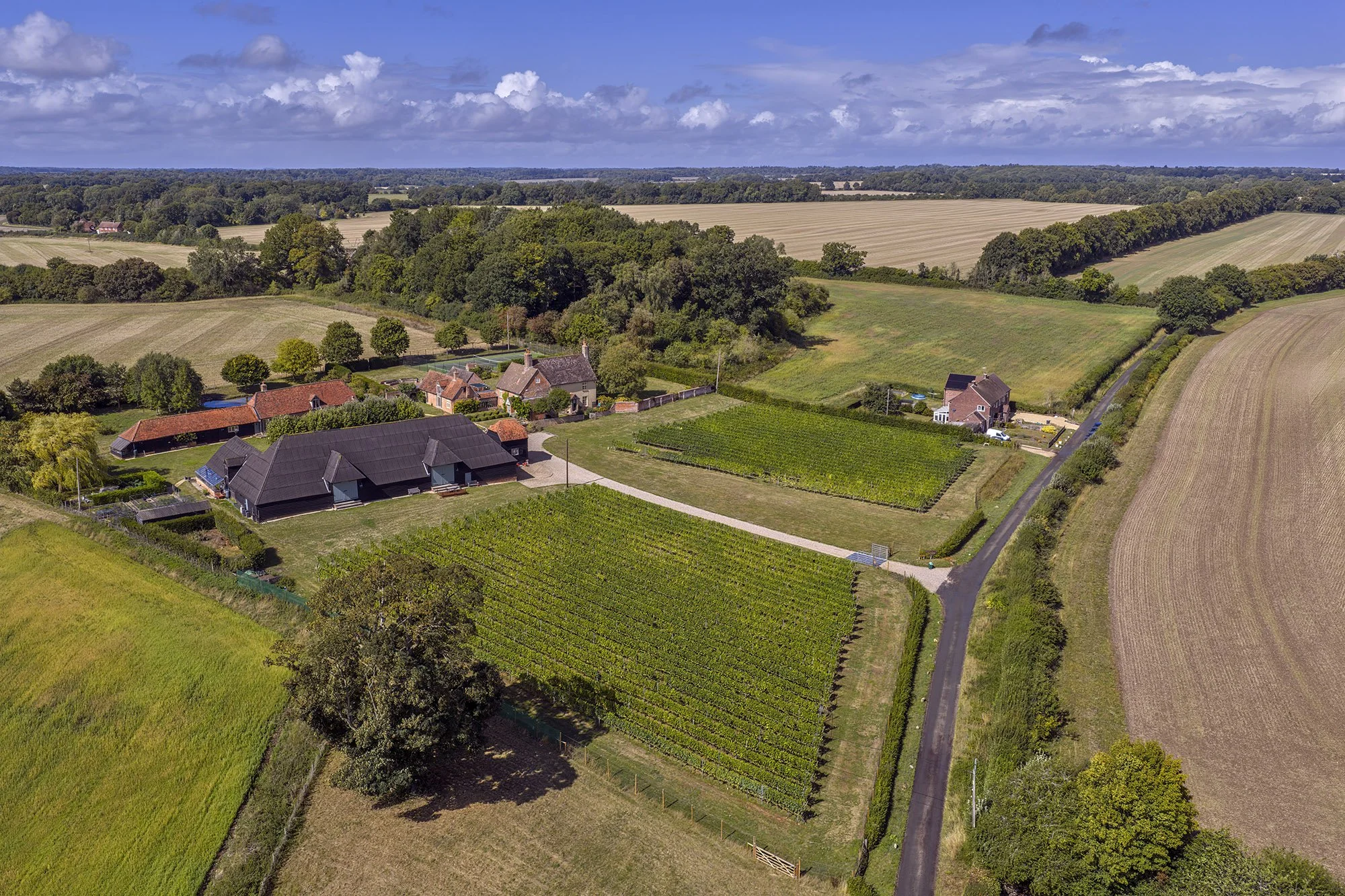 We are a boutique, organic vineyard situated in the beautiful west corner of Berkshire between Hungerford and Newbury. The vines are planted on free draining loam over flint and chalk. Our wine is made from the classic champagne varieties and undergoes the traditional method of making with two fermentations: the first in oak barrel and the second in the bottle. We age our wines for a minimum of 24 months on their yeast lees before disgorging. This is then followed by 6 months resting on ‘cork’ before release. The watchword is: fruit always comes before long lees ageing.
